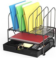 Mesh Desk Storage Organizer com bandeja dupla 5 seções verticais e gaveta deslizante